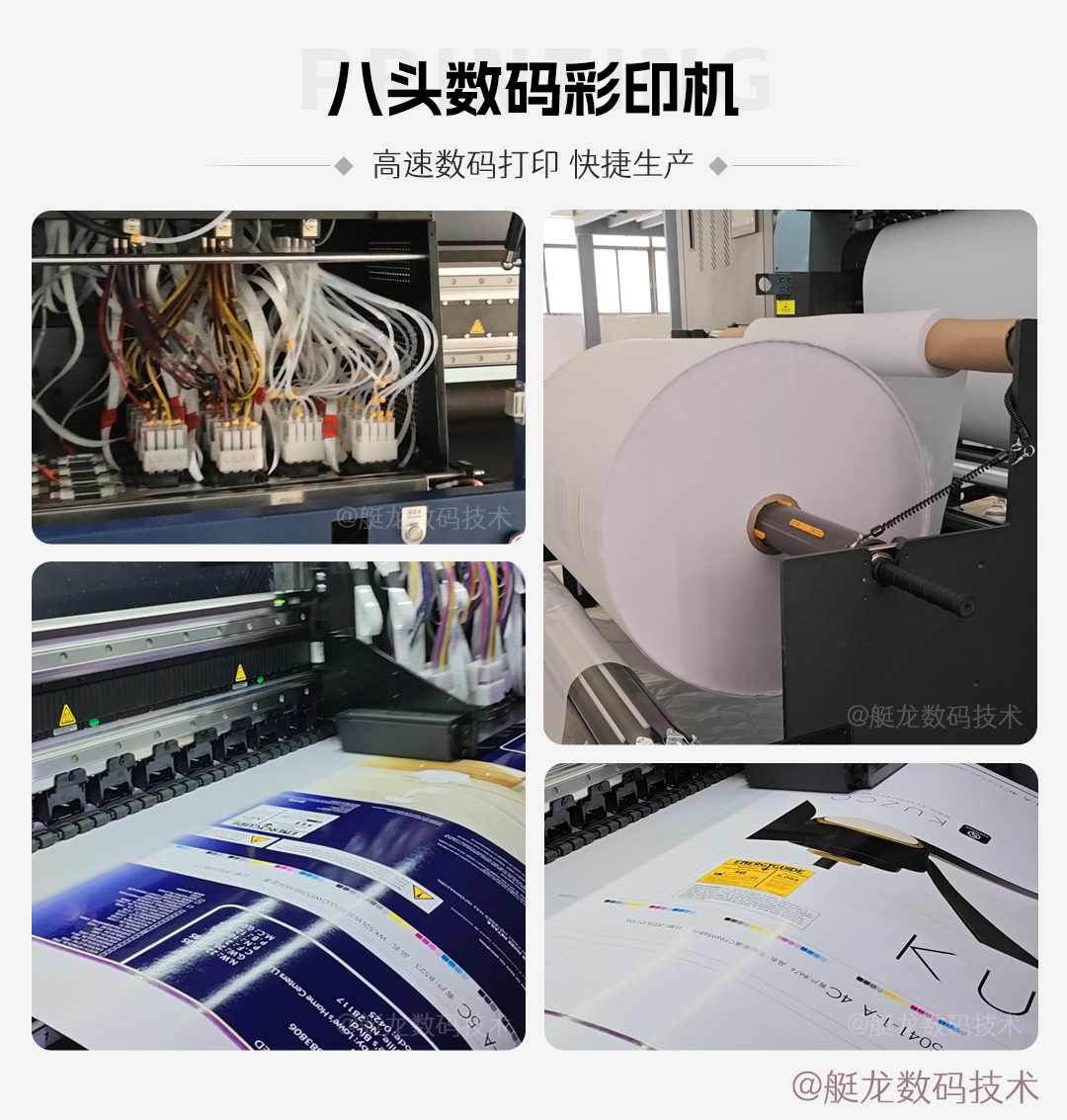 In this context, high-speed multi head digital printing machines have emerged, designed specifically to meet such high-capacity demands. Among them, the eight head digital printing machine of Dinglong Digital performs particularly well. The machine is equipped with 8 Epson i3200-A1 print heads, an advanced configuration that ensures high printing accuracy while increasing production speed to 50 square meters per hour. Whether it's delicate patterns, rich colors, or complex text, they can all be presented clearly and accurately, truly achieving a perfect combination of high quality and high efficiency.